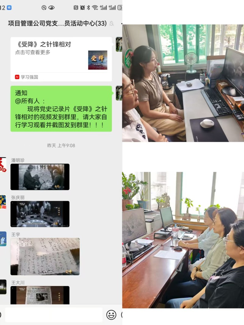 9月1日,項(xiàng)目管理公司黨支部開展“重溫歷史 奮勇爭先”主題活動(dòng)?;顒?dòng)中,全體黨員干部共同觀看黨史紀(jì)錄片《受降》,紀(jì)錄片以詳實(shí)的史料、珍貴的影像生動(dòng)展現(xiàn)中國共產(chǎn)黨始終以人民利益為根本,在復(fù)雜形勢下堅(jiān)守信仰、運(yùn)籌帷幄的政治智慧和使命擔(dān)當(dāng),引導(dǎo)黨員干部不斷加強(qiáng)黨史學(xué)習(xí),切實(shí)把優(yōu)秀歷史經(jīng)驗(yàn)轉(zhuǎn)化為推動(dòng)工作的實(shí)際行動(dòng)。