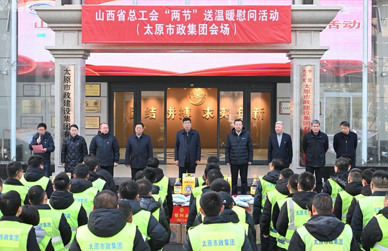 省人大常委會(huì)副主任、省總工會(huì)主席王純代表山西省總工會(huì),向太原市政集團(tuán)贈(zèng)送“兩節(jié)”慰問金貳拾萬元整,集團(tuán)公司黨委書記、董事長郝東輝代表企業(yè)接收。出席慰問活動(dòng)的領(lǐng)導(dǎo)為一線職工代表發(fā)放米、面、油等慰問物資,切實(shí)把工會(huì)“娘家人”的溫暖送到職工心坎。隨后,省人大常委會(huì)副主任、省總工會(huì)主席王純與省五一勞動(dòng)獎(jiǎng)?wù)芦@得者王曉龍和困難職工李冬生、劉少偉圍坐交流,細(xì)致詢問他們的工作日常與生活近況,并送上慰問金及慰問品。