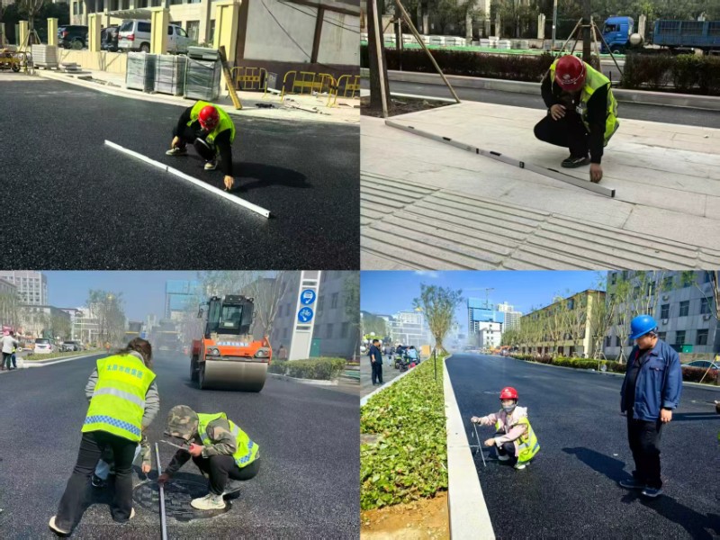 理論與實踐緊密結(jié)合,方能彰顯力量。各在建項目部積極響應(yīng),組建由項目經(jīng)理掛帥,工長、質(zhì)檢員協(xié)同作戰(zhàn)的質(zhì)量檢查小組。他們攜帶測溫儀、塞尺、鋼直尺等專業(yè)工具,深入施工現(xiàn)場,對道路面層與工程材料展開“地毯式”排查,從路面平整度到材料規(guī)格,不放過任何細(xì)微之處,將質(zhì)量管控觸角延伸至施工現(xiàn)場的每一角落,用實際行動守護工程質(zhì)量的“生命線”。
