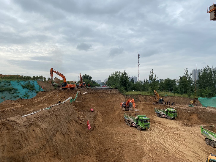 開工伊始,為保證在工期內(nèi)保質(zhì)保量完成施工任務,項目部將工程按照路口和節(jié)點劃分為三個工區(qū),采取平行作業(yè)、見縫插針、多點開花的施工方式,搶抓施工節(jié)點,打開工作面。根據(jù)設計要求,該工程在下穿東山過境高速節(jié)點設置通道,采用全斷面分級放坡開挖方式進行施工。由于高速封閉、改遷、臨時保通便道的使用和恢復都需要與交警、高速公路等多個單位、部門溝通協(xié)調(diào),程序繁瑣、手續(xù)復雜。項目部精準施策破解難點,派專人負責溝通協(xié)調(diào),提前按要求備齊資料,在最短的時間內(nèi)辦理好了相關手續(xù)。在辦理通道施工相關手續(xù)的同時,其他工區(qū)也在緊張施工,平行作業(yè)與流水作業(yè)交替進行。截至目前,東中環(huán)到高速路以西已完成中面層瀝青混凝土鋪筑,為下穿高速通道工程的土方開挖、外運打通運輸通道,為后續(xù)通道施工創(chuàng)造了良好的施工條件,贏得寶貴的施工時間。