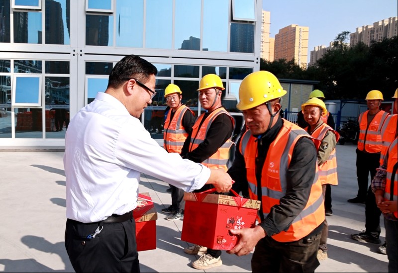 活動中,市總工會領(lǐng)導(dǎo)與一線施工人員進行了親切交談,仔細(xì)詢問項目進展和員工生活保障情況,并為大家送來了月餅、豬肉等慰問品。